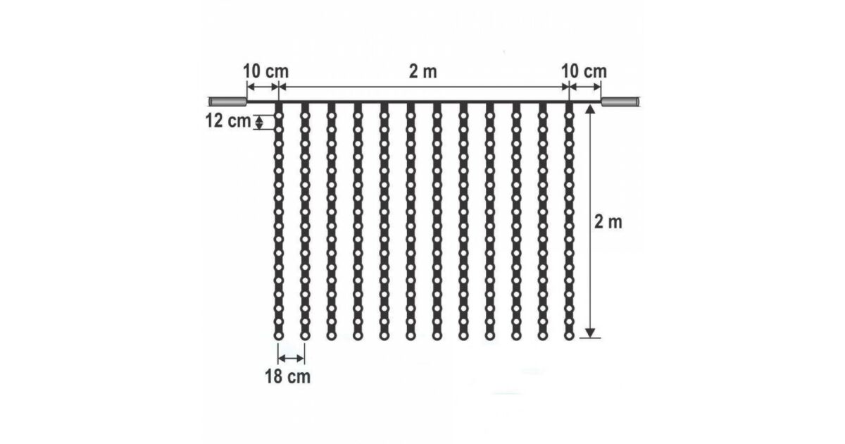 Strona główna Kurtyna świetlna LED KSF 204/WW, 2x2 m / 204 diody LED o barwie ciepłej bieli, światło ciągłe, przewód czarny, możliwość aranżacji, do zastosowań zewnętrznych i wewnętrznych