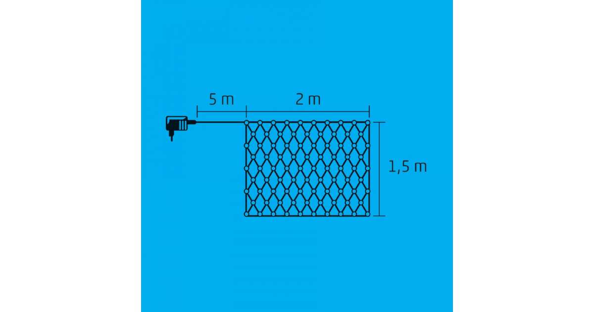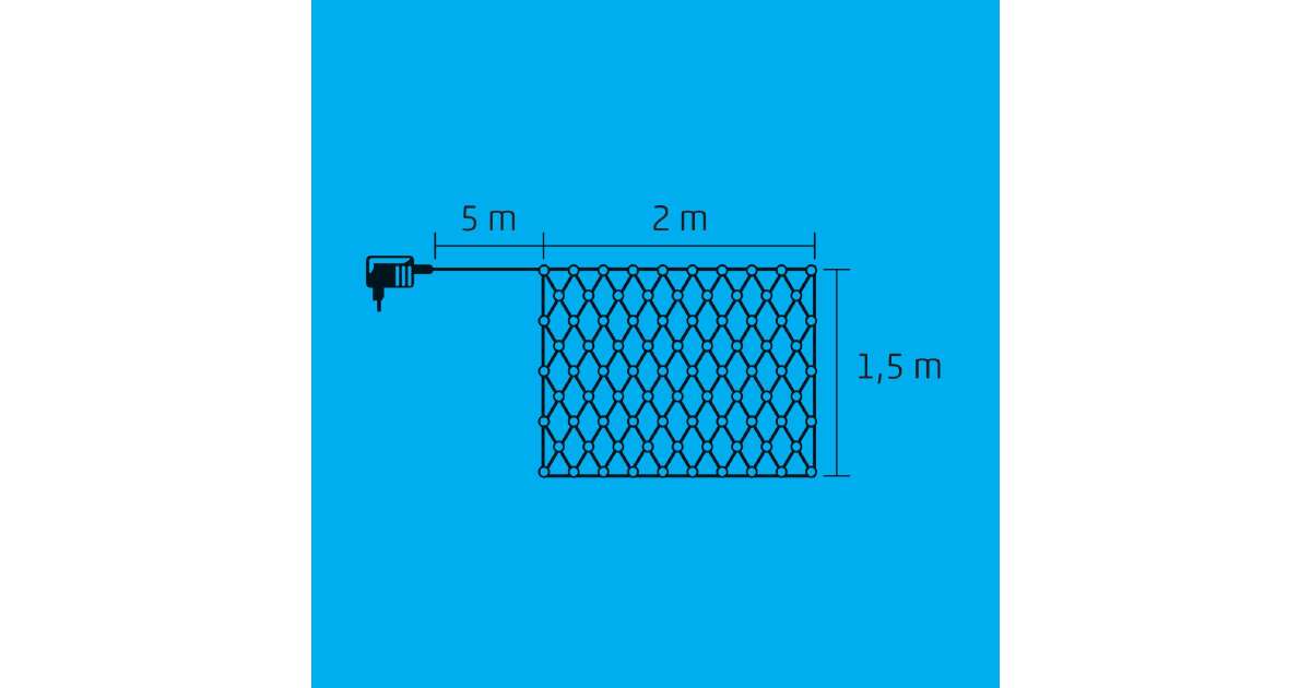 Strona główna KLN 160C/WH Siatka LED, 2x1,5 m / 160 diod LED o barwie zimnej bieli, przewód zielony, światło ciągłe, zasilacz sieciowy, do zastosowań zewnętrznych i wewnętrznych