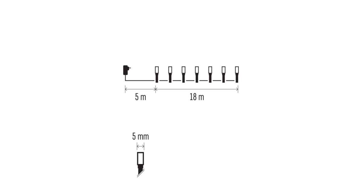 - Długość: 18 metrów (5 metrów przewód zasilający + 13 metrów girlanda)