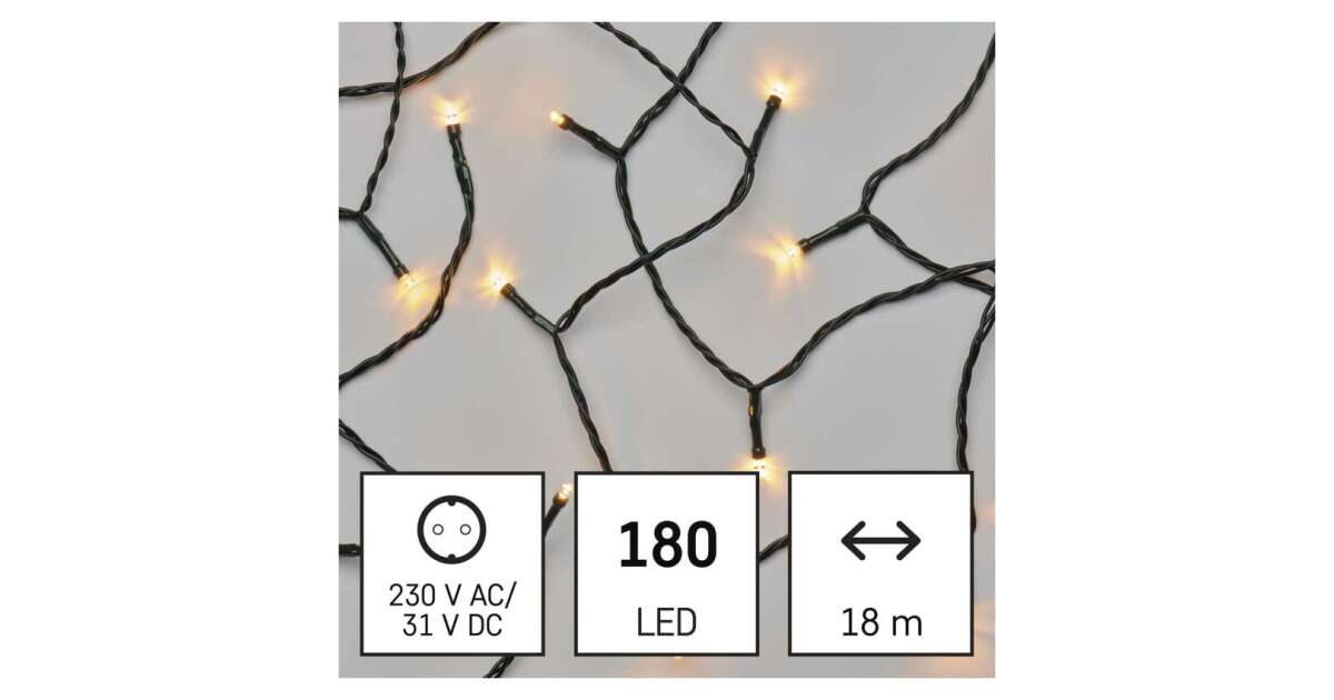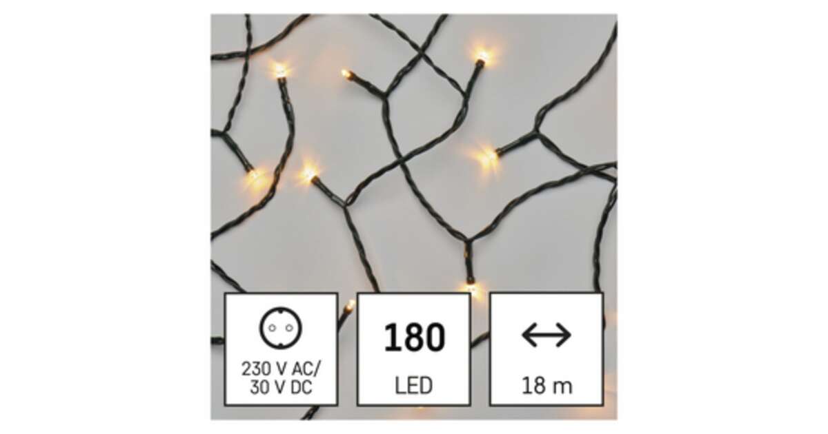 Przygotuj się na święta Bożego Narodzenia z tą piękną, 18-metrową girlandą LED! 🎄 180 ciepłobiałych diod LED rozświetli Twój dom, zarówno w środku, jak i na zewnątrz. Lampki w stylu vintage stworzą przytulny nastrój, idealne do dekoracji choinki, ale również okien, balkonów czy ogrodu.