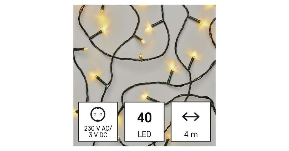 Z tym 4-metrowym LED-owym łańcuchem świetlnym stworzysz świąteczny nastrój w swoim domu lub ogrodzie! 40 ciepłych, białych LED-owych żarówek zapewni przyjemne, świąteczne światło. Dzięki wbudowanemu timerowi automatycznie się włącza i wyłącza, dzięki czemu zaoszczędzisz energię.