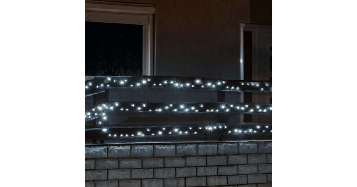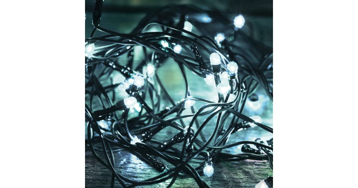 Łańcuszek świetlny LED Home LED 108C/WH, 7 m / 100 diod LED o barwie zimnej bieli, 8 programów świetlnych, zielony przewód, zasilacz sieciowy, do zastosowań zewnętrznych i wewnętrznych