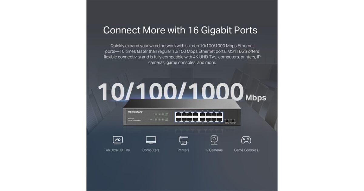 Mercusys MS116GS 16-portowy przełącznik Gigabit: Szybka i niezawodna sieć dla domu i biura 💻