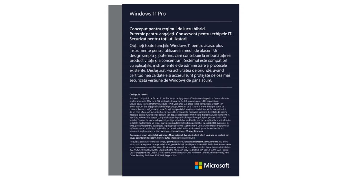 Microsoft Windows 11 Pro. Wersja językowa: Angielski, Typ licencji: Produkt pełny pakowany (FPP), Liczba licencji użytkownika: 1 x licencja. Minimalna ilość miejsca w pamięci komputerowej: 64 GB, Minimum RAM: 4 GB, Minimalna prędkość procesora: 1 GHz. Typ mediów: Pamięć USB flash