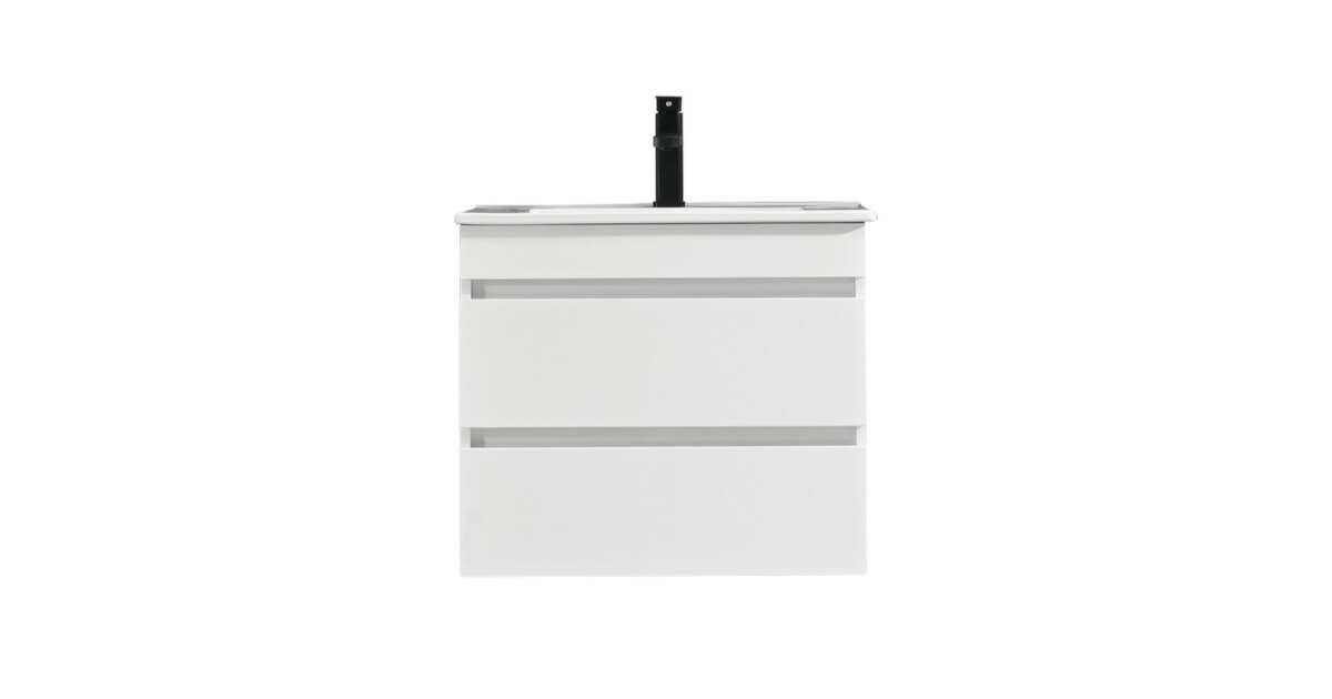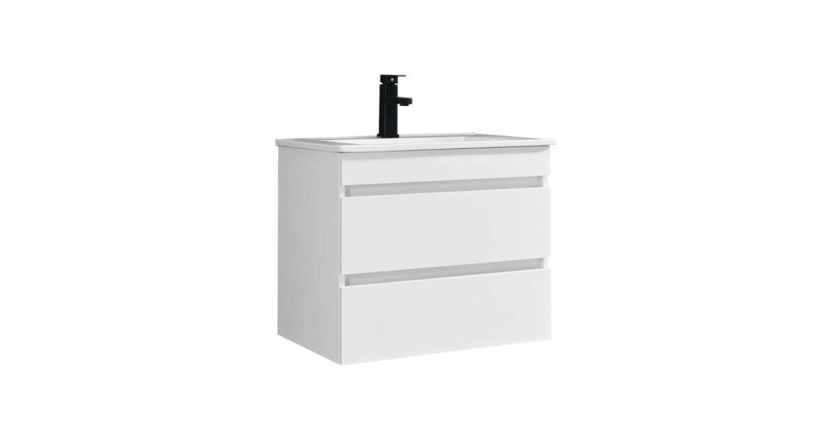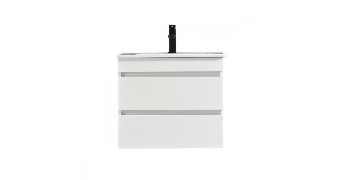 Szafka łazienkowa dolna Cube 60 z umywalką ceramiczną 2 szuflady, biały lakierowany na wysoki połysk