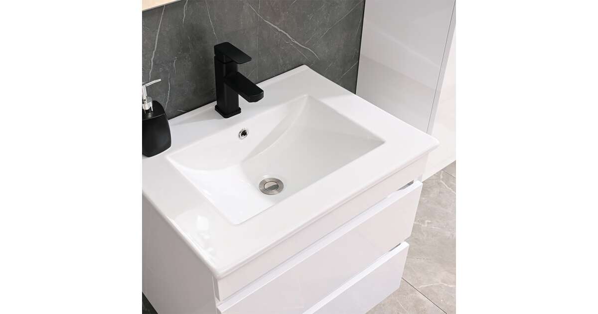 - Z umywalką ceramiczną: W zestawie znajduje się idealnie dopasowana wysokiej jakości umywalka ceramiczna z głęboką misą i miejscem na baterię.