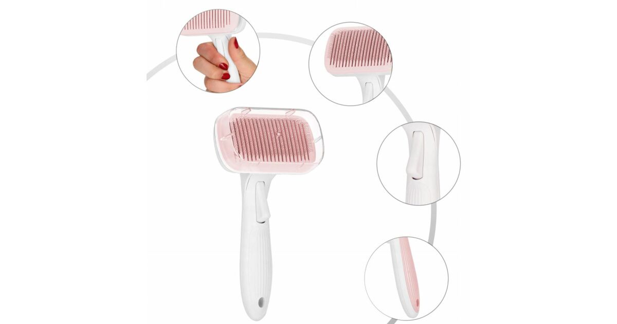 Szczotka, grzebień do pielęgnacji psów i kotów, z pokrywką, samoczyszcząca, różowo-biała opis