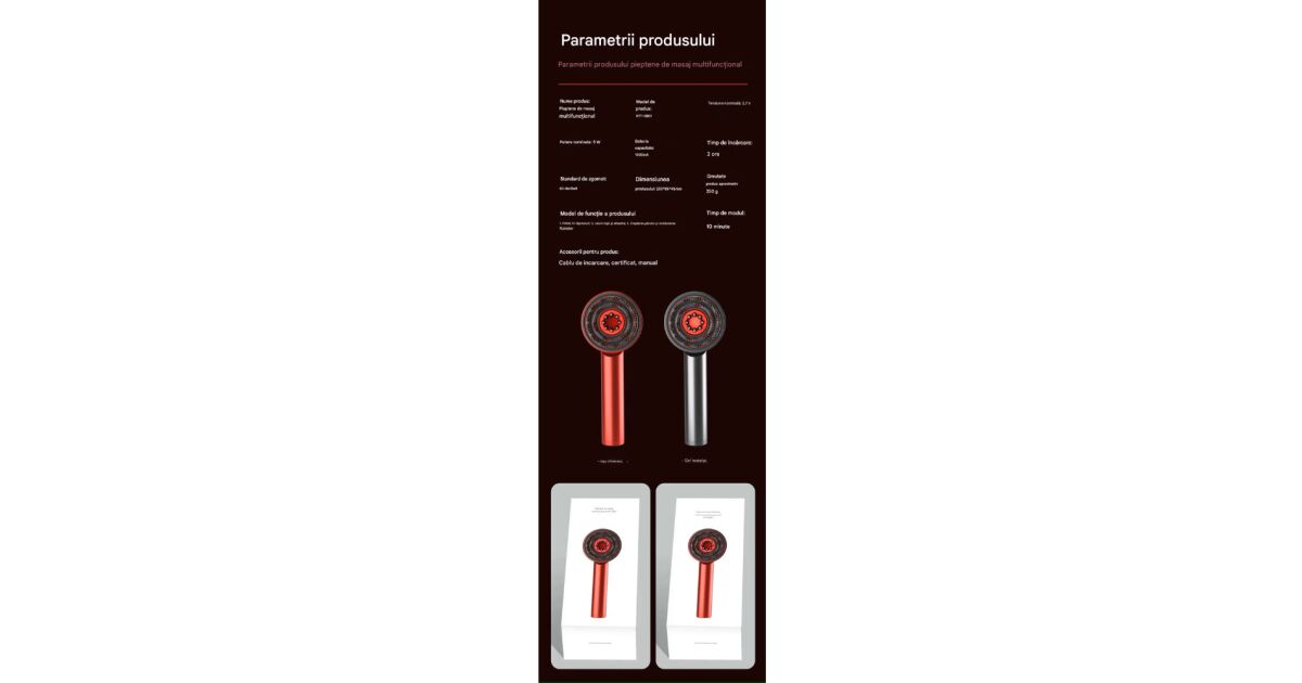 - Inteligentny aplikator do serum: Równomiernie rozprowadza preparaty na skórze głowy.