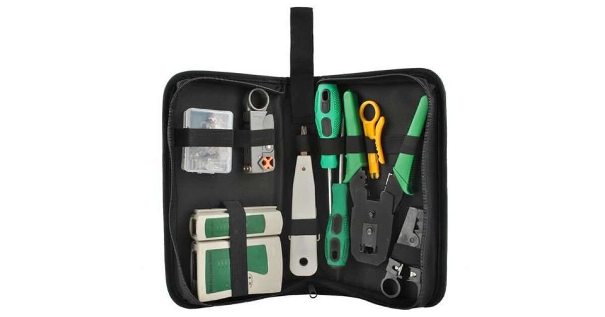 Ten praktyczny zestaw zawiera wszystkie narzędzia potrzebne do szybkiego i łatwego montażu kabli sieciowych. Dzięki zamykanemu na zamek błyskawiczny futerałowi jest łatwy w transporcie i przechowywaniu.
