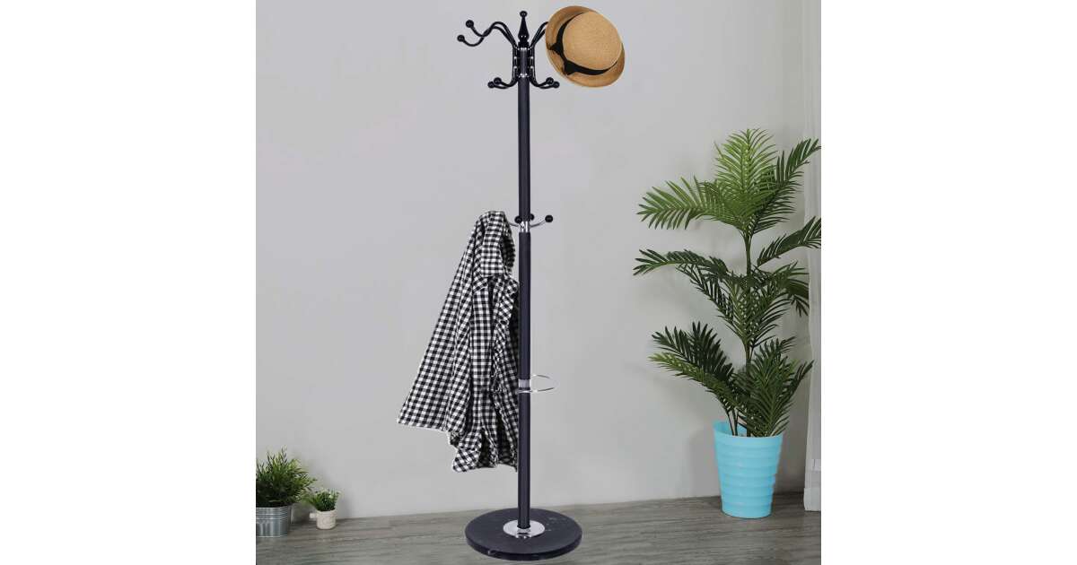 Springos Stojący wieszak na ubrania z uchwytem na parasol, z marmurową podstawą opis