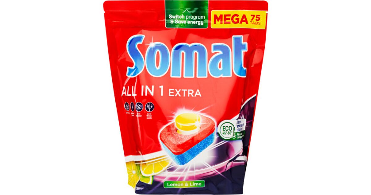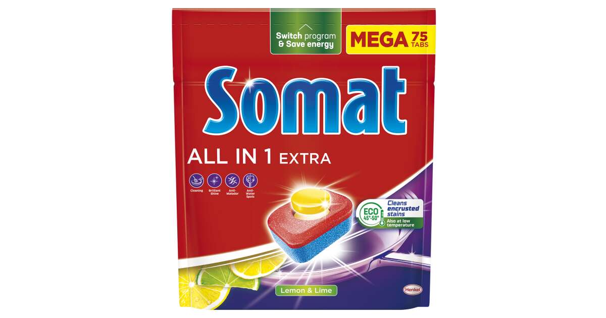 Tabletki do zmywarki Somat All in 1 Extra Lemon&Lime 75 sztuk: Czyste naczynia, niskie zużycie energii 🍋✨