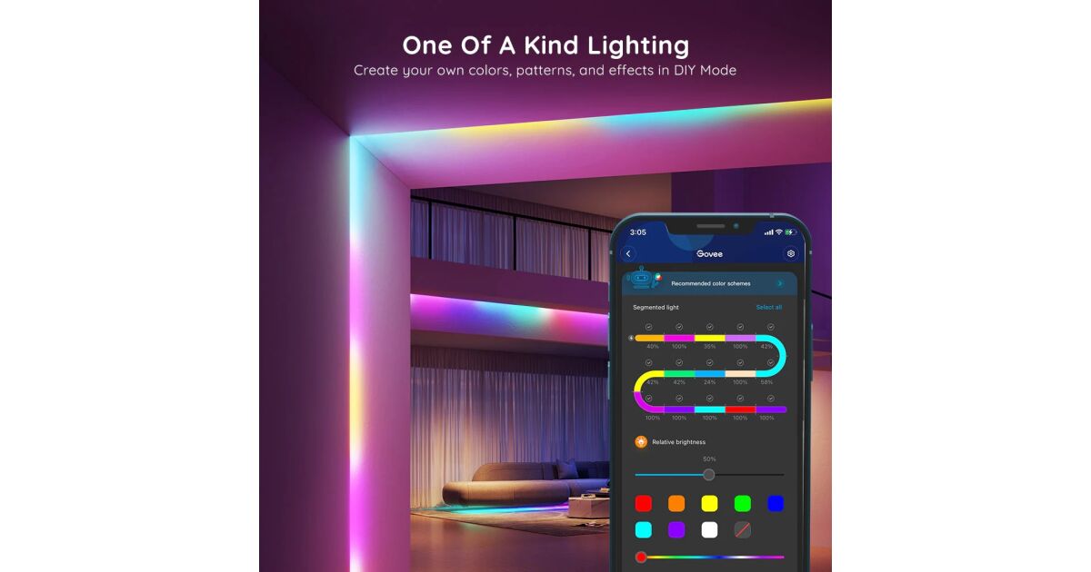 - Opcje DIY (Govee Light Studio): Swobodnie projektuj własne efekty świetlne.
