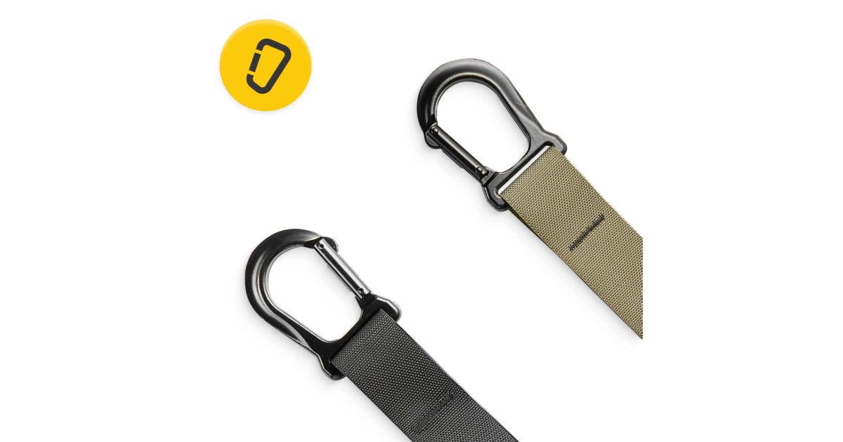 - Zawartość zestawu: dwa paski z metalowymi karabińczykami, uchwyty z pianki, uchwyt do drzwi, worek siatkowy