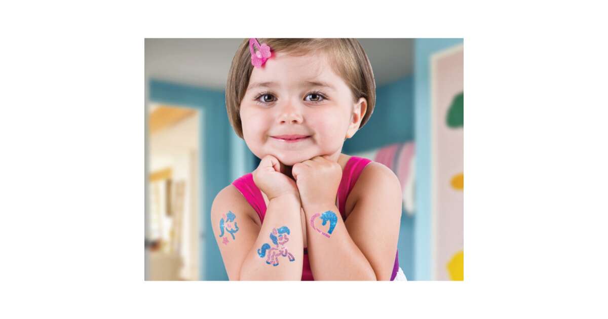 W zestawie znajdziesz wszystko, czego potrzebujesz do stworzenia magicznych tatuaży brokatowych! (z wyjątkiem brokatu i kleju)