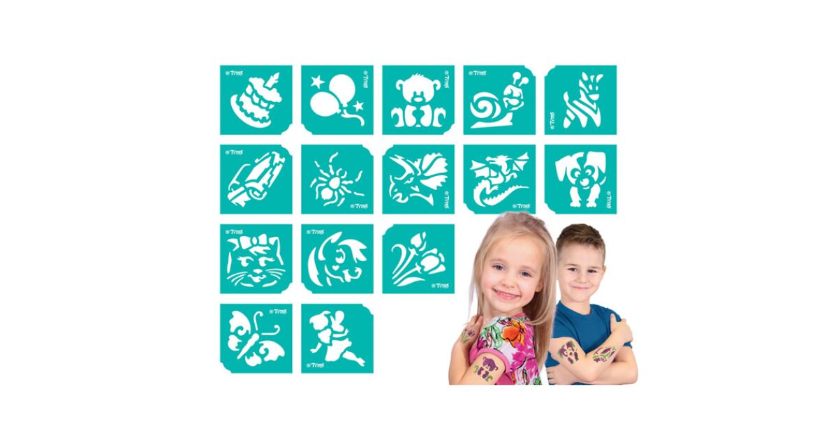 Zaskocz swoje dziecko tym 15-częściowym zestawem szablonów do tatuaży brokatowych, dzięki któremu stworzycie wyjątkową i zabawną dekorację urodzinową! W zestawie znajdziesz ulubione zwierzątka, takie jak kotek, miś, piesek i wiele innych! Za pomocą szablonów z łatwością stworzysz piękne tatuaże brokatowe, które ożywią atmosferę imprezy. ✨
