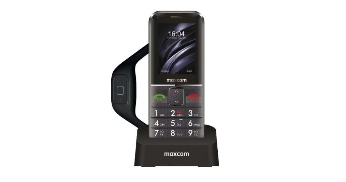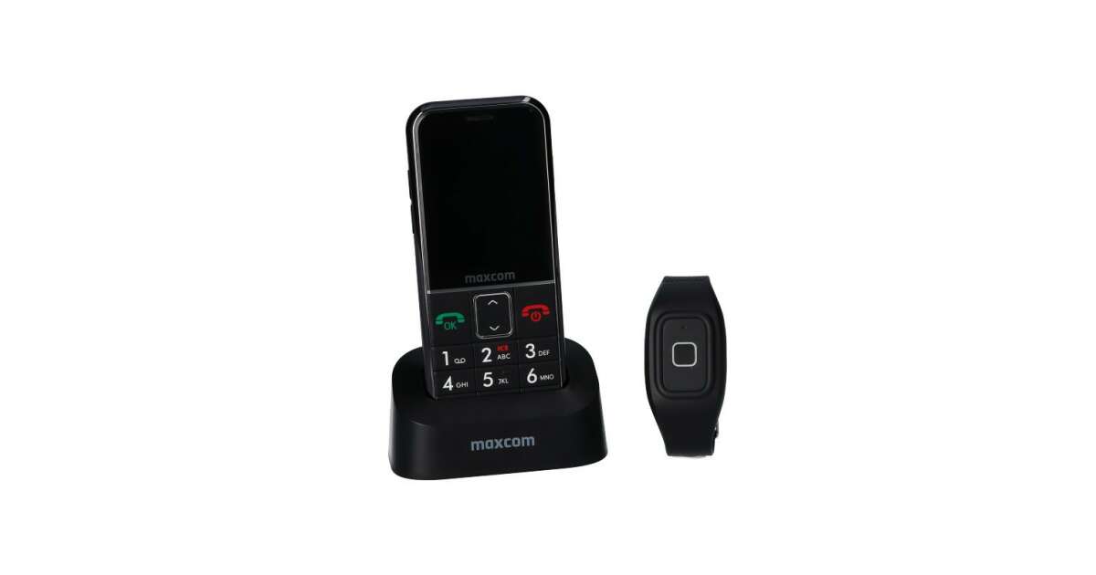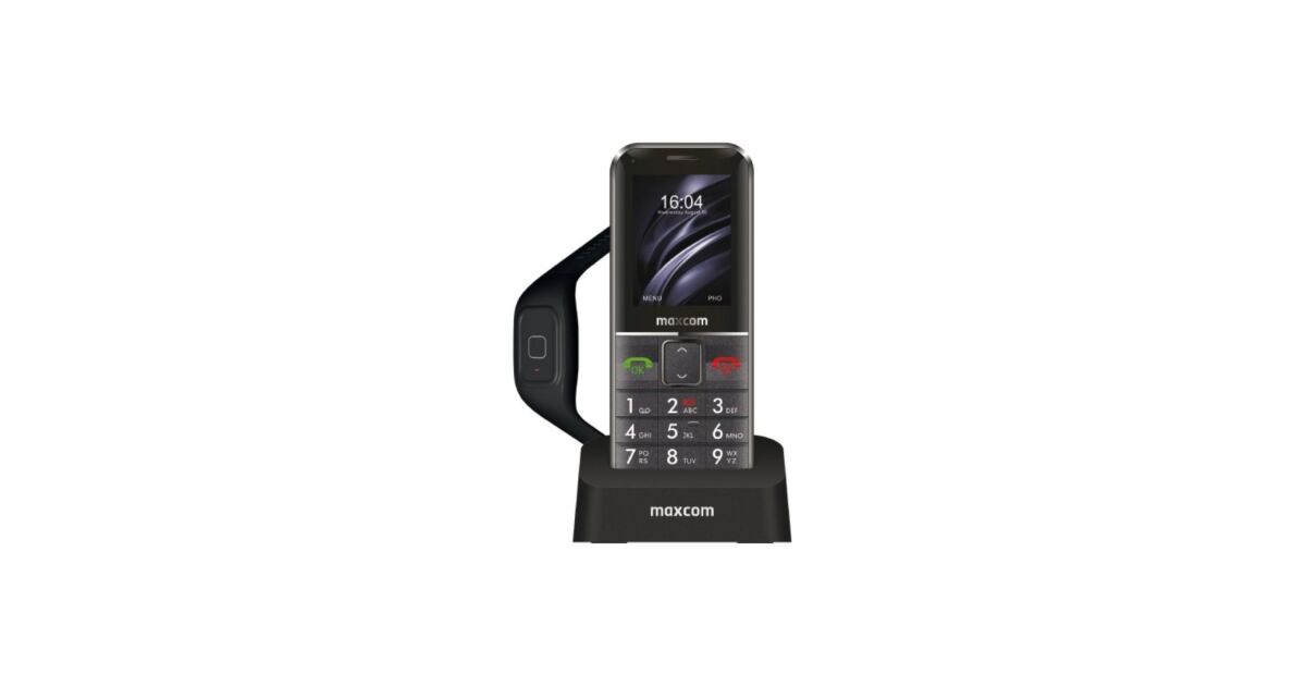 Telefon komórkowy Maxcom MM735BB z bransoletką SOS, bardzo dużymi przyciskami (z menu w języku węgierskim)