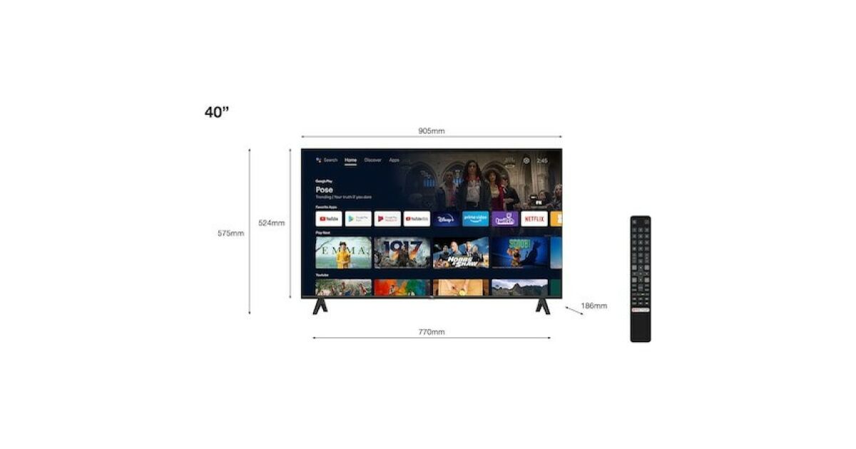Telewizor LED TCL 40S5400AF, 101 cm, telewizor Smart Android, Full HD, klasa F (model 2023)