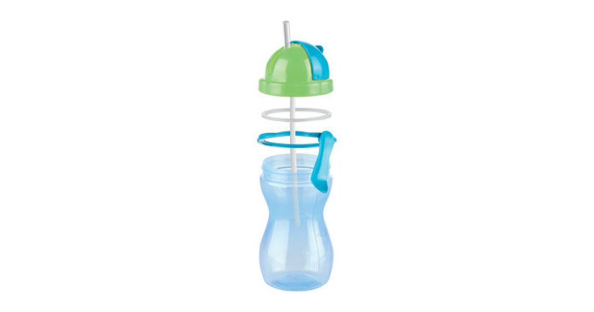 -BAMBINI Butelka ze słomką dla dzieci 300 ml, zielona, różowa opis