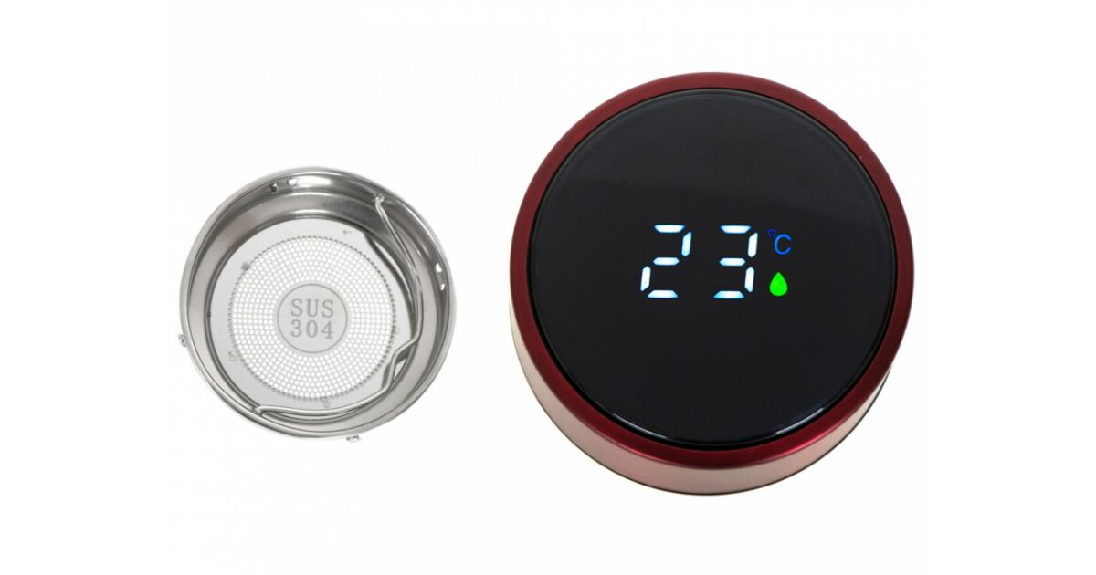 - LED-owy termometr: Wyświetlacz aktywowany dotykiem, który precyzyjnie pokazuje temperaturę napoju (zielony: zimny, czerwony: powyżej 60°C).