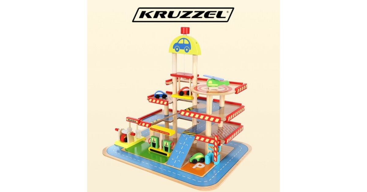 Drewniany parking Kruzzel – 4 poziomy, 27 elementów 🚗