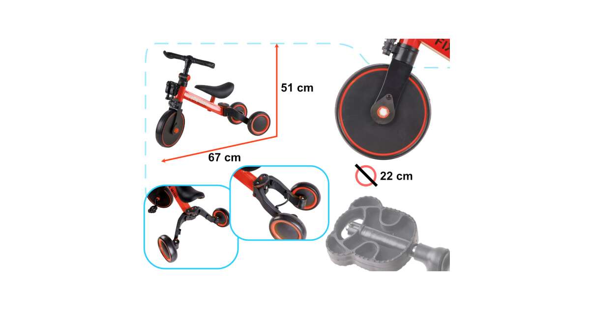 Rower trójkołowy Ikonka Trike Fix Mini 3w1 All Terrain Trike - czerwony opis