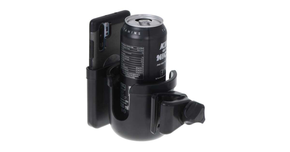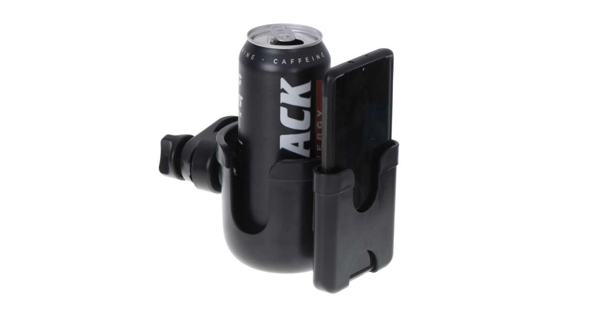 Ten praktyczny dodatek do wózka jednocześnie trzyma telefon i napój, dzięki czemu ważne rzeczy zawsze będą pod ręką. Dzięki elastycznej konstrukcji stabilnie trzyma kubek, butelkę, bidon lub termos, zapobiegając rozlaniu. Schowek na telefon bezpiecznie trzyma urządzenie, więc nie musisz się martwić, że je upuścisz lub zgubisz.