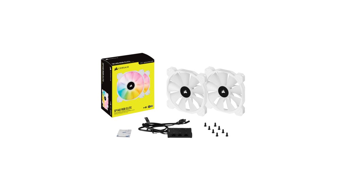 Wentylatory CORSAIR SP Series, White SP140 RGB ELITE, 140mm RGB LED Fan with AirGuide, Dual Pack with Lighting Node CORE opis