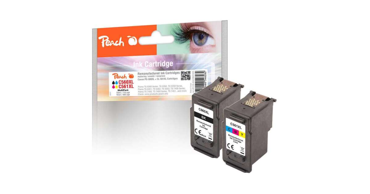 Zestaw wkładów Peach C560XL/C561XL XL: 2 sztuki, czarny, cyjan, magenta, żółty