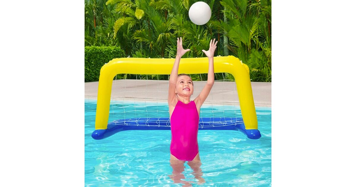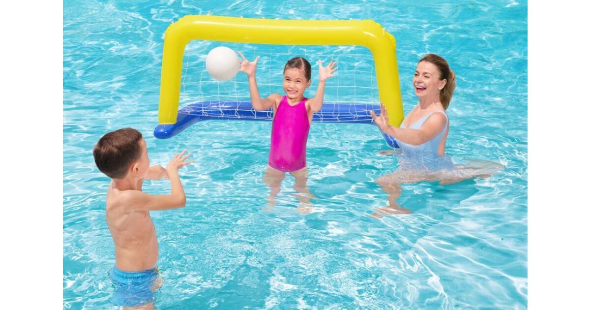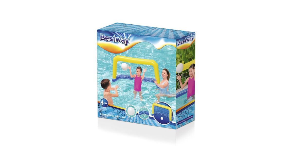 Dzięki grze Bestway® Water Pool Swimming Pool Game dzieci mogą zostać profesjonalnymi graczami w piłkę wodną! Będą się świetnie bawić próbując wrzucić piłkę do bramki przeciwnika. Bramkę można używać wyłącznie w wodzie. Wykonany z wytrzymałego materiału, bardzo prosty i szybki w montażu. Właściwości: Wymiary: 142 x 76 cm3 od 3 roku życia Tylko do użytku w wodzie Szybki i łatwy montaż Zawory bezpieczeństwa Duży rozmiar, wstępnie przetestowany winyl Siatka nylonowa Zawartość opakowania: Wzmocnienie do piłki wodnej + siatka Piłka