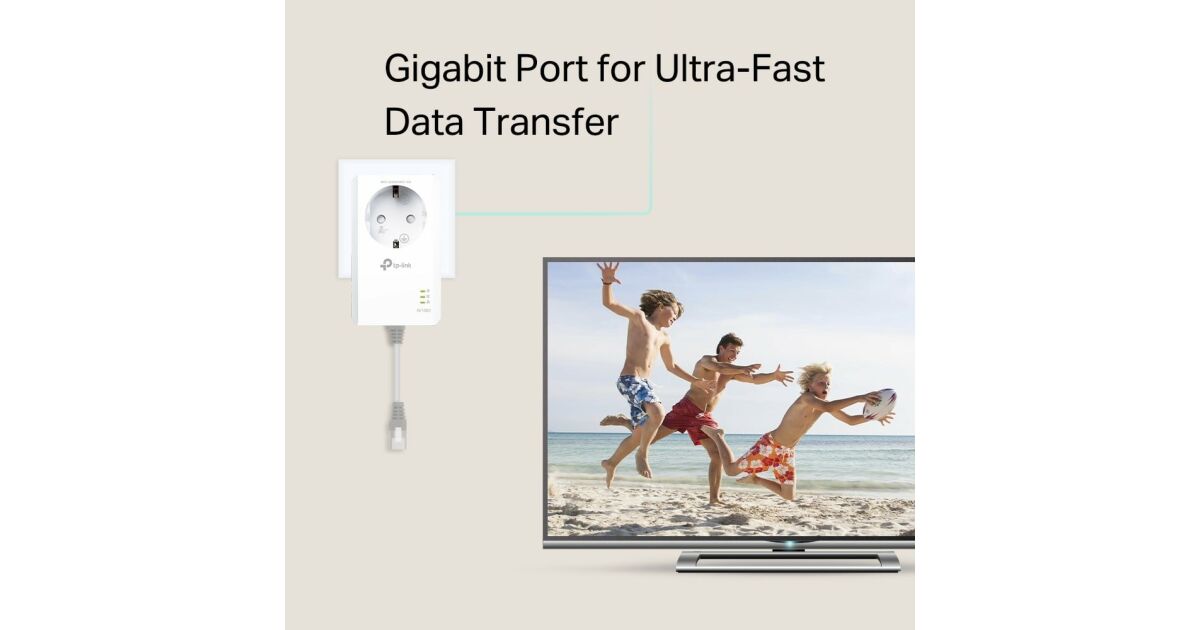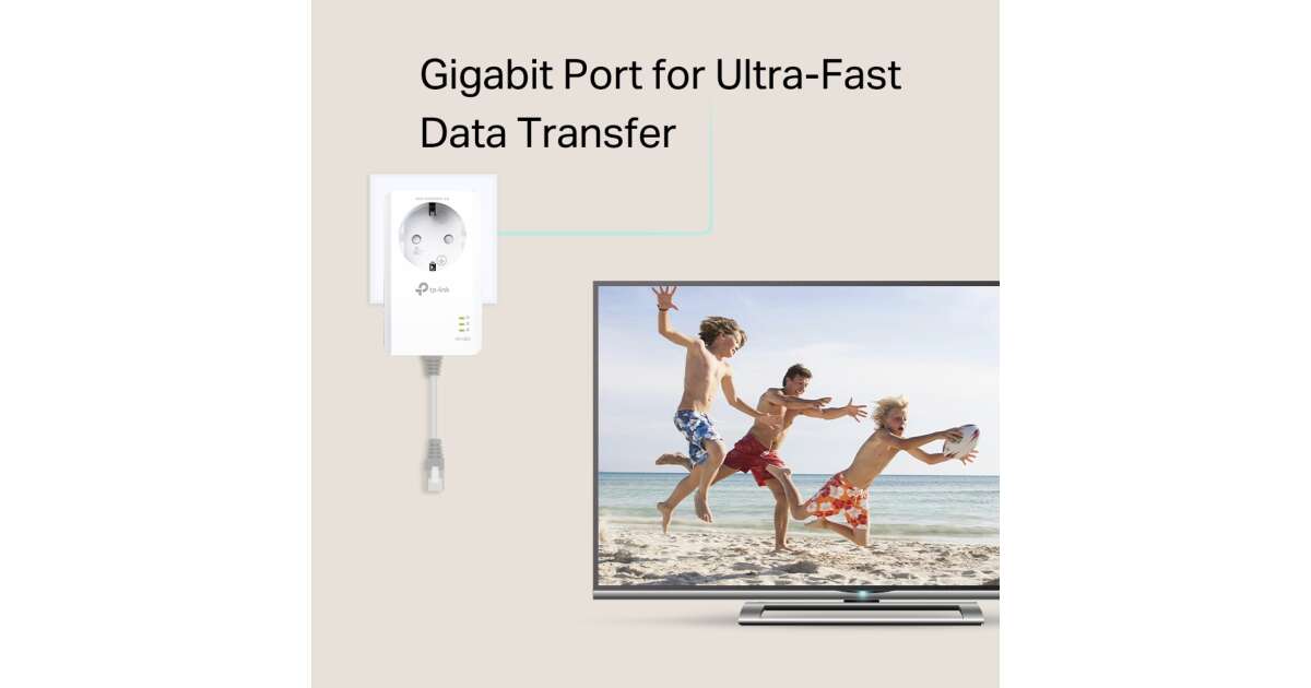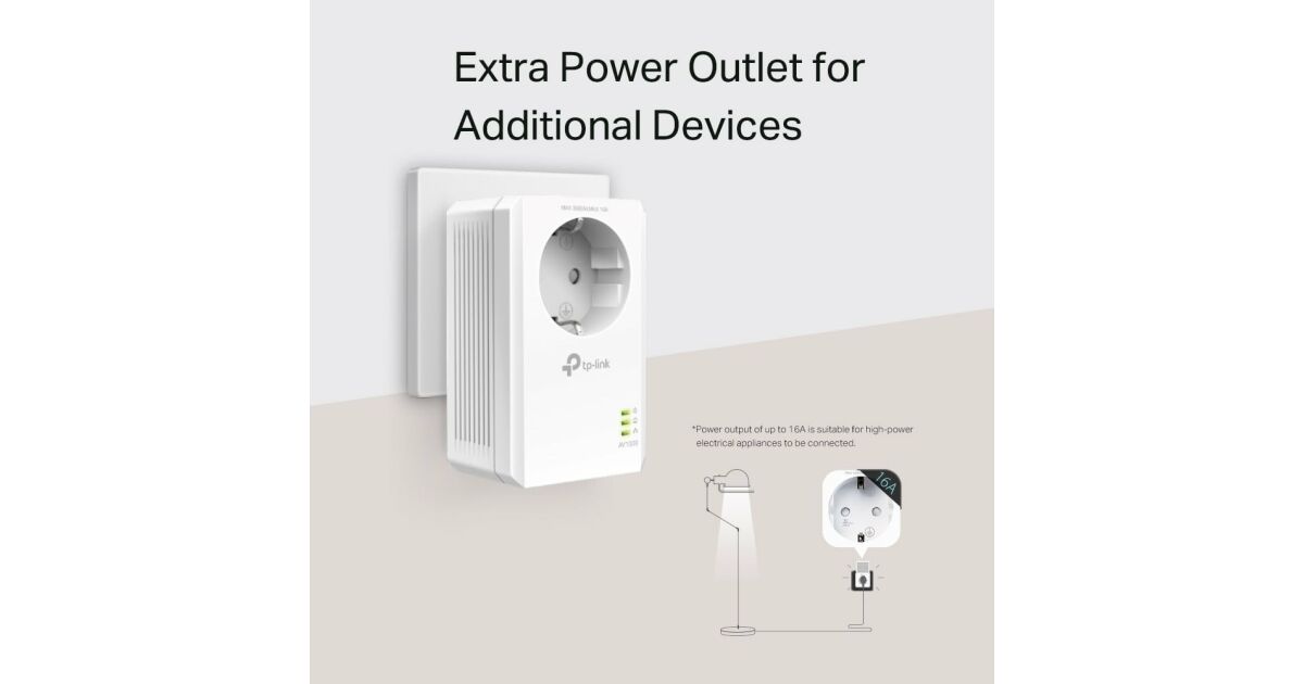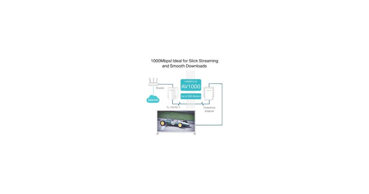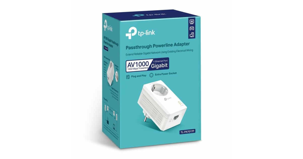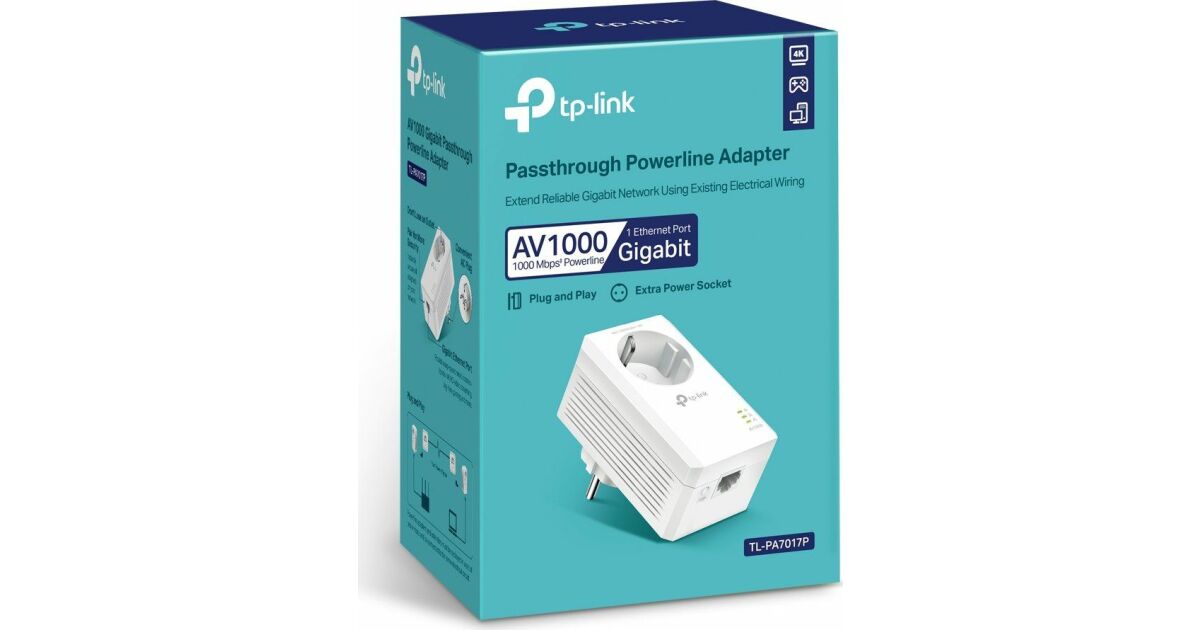 TP-LINK | AV1000 Gigabit Passthrough Powerline Adapter | TL-PA7017P | 1000 Mbit/s | Ethernet LAN (RJ-45) ports 1 | No Wi-Fi | Extra socket opis