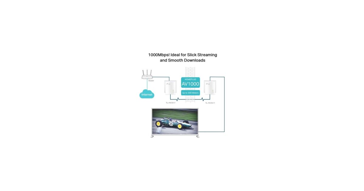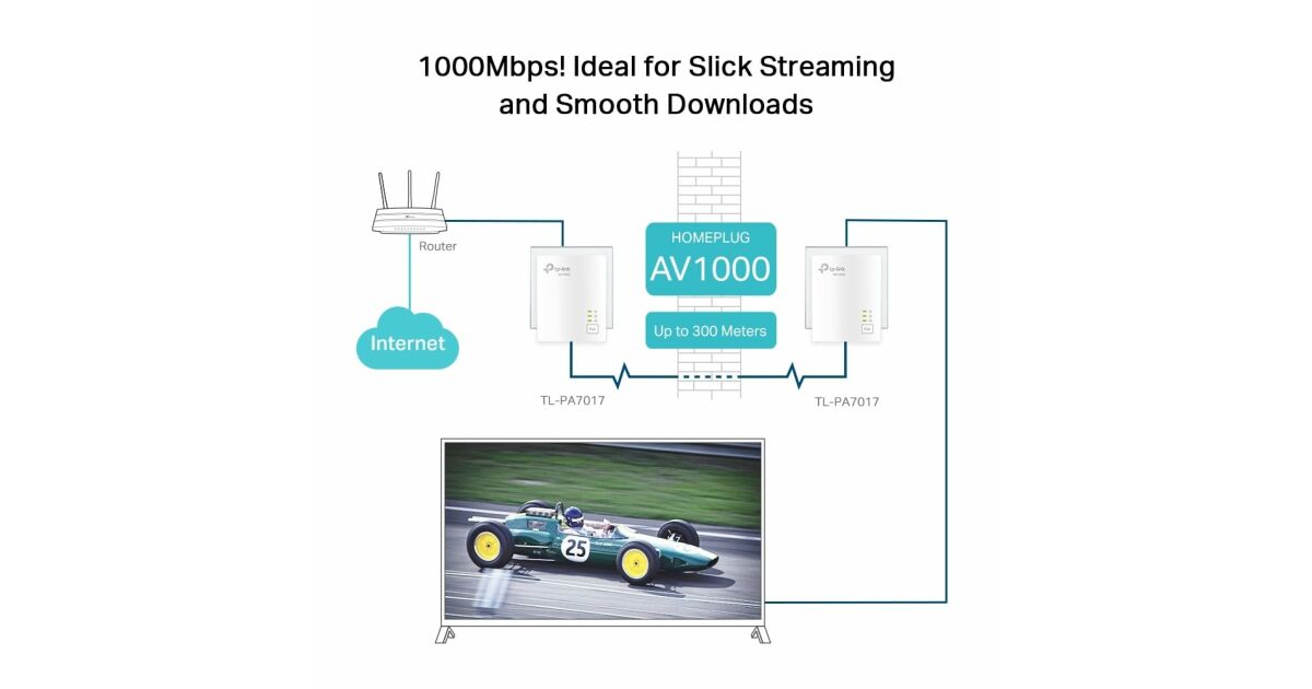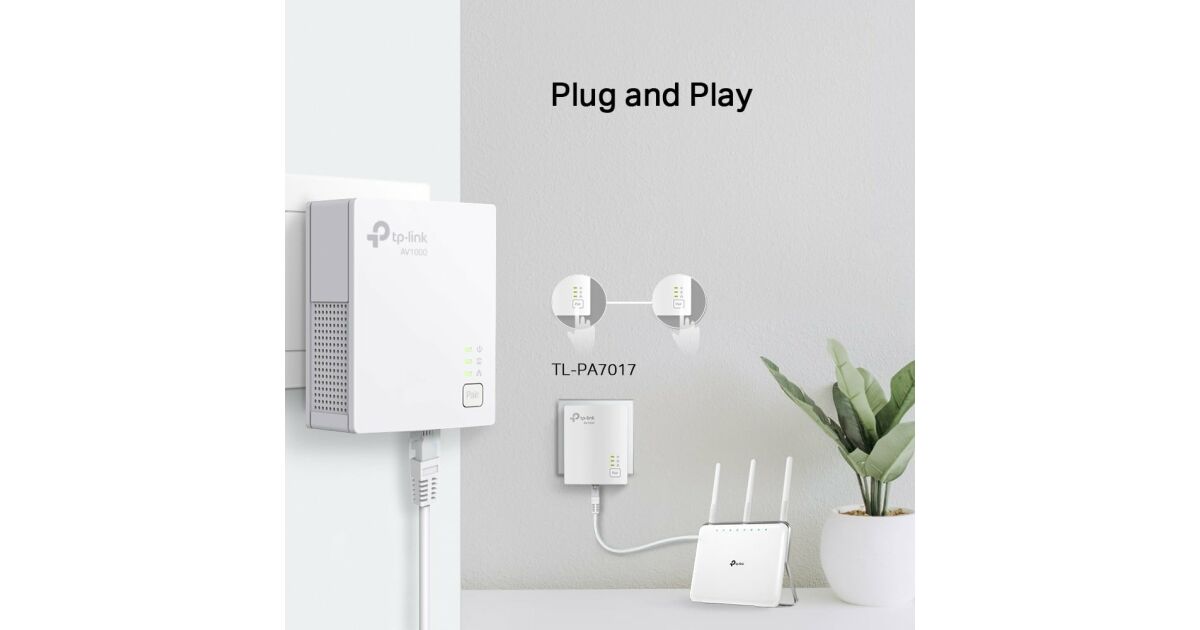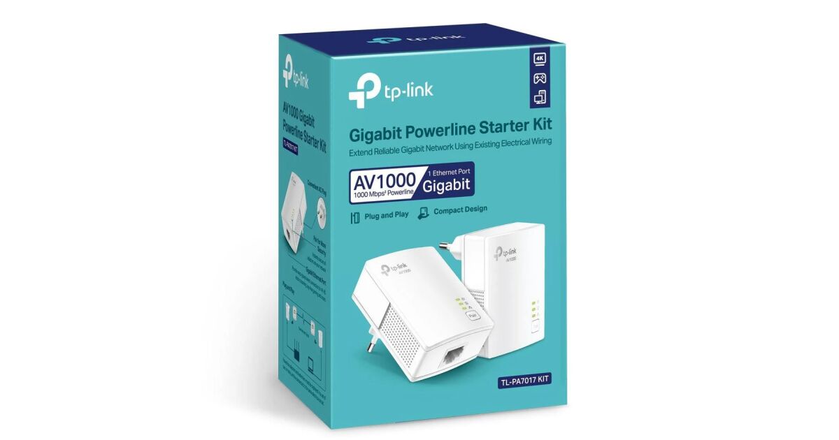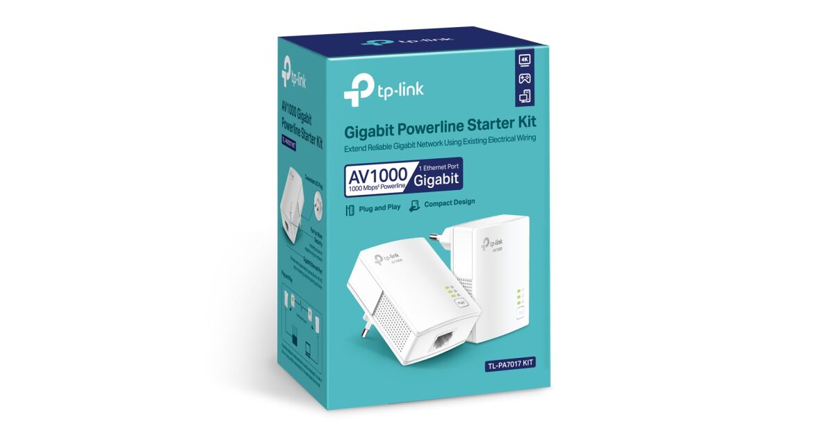 TP-LINK | Gigabit Powerline Starter Kit | TL-PA7017 KIT | 10/100/1000 Mbit/s | Ethernet LAN (RJ-45) ports 1 | No Wi-Fi | Data transfer rate (max) 1000 Mbit/s | Extra socket opis