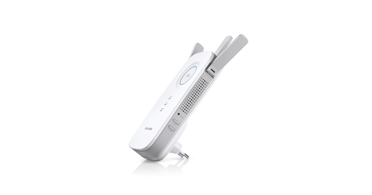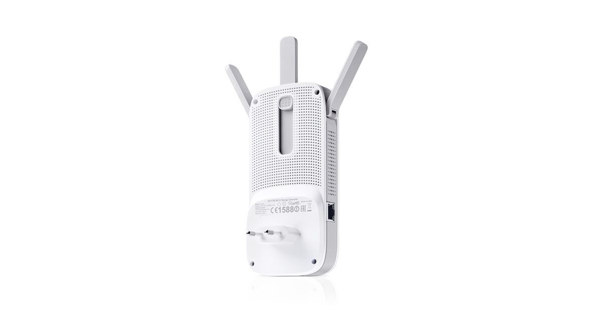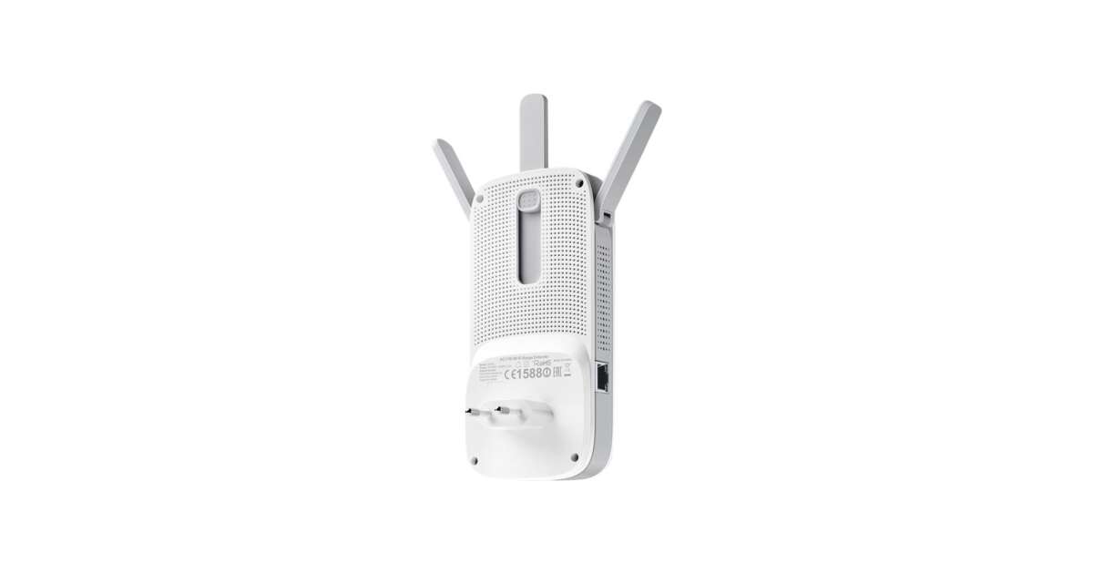 TP-Link RE450. Model: Nadajnik i odbiornik sieci, Realna szybkość przesyłania danych: 1300 Mbit/s, Prędkość transferu danych przez Ethernet LAN: 10,100,1000 Mbit/s. Typ anteny: Zewnętrzny, Moc nadawcza (CE): 2.4 GHz ≤20dBm, 5 GHz ≤23dBm. Technologia okablowania: 10/100/1000Base-T(X), Standardy komunikacyjne: IEEE 802.11a, IEEE 802.11ac, IEEE 802.11b, IEEE 802.11g, IEEE 802.11n, IEEE 802.3, IEEE 802.3ab,..., Standardy Wi- Fi: 802.11a, Wi-Fi 5 (802.11ac), 802.11b, 802.11g, Wi-Fi 4 (802.11n). Kolor produktu: Biały, Ilość na paczkę: 1 szt.. Napięcie wejściowe AC: 100 - 240 V, Częstotliwość wejściowa AC: 50/60 Hz, Maksymalne zużycie mocy: 9 W