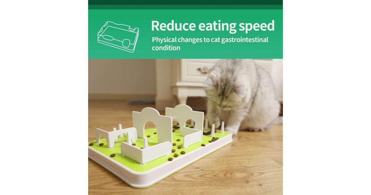Złożona i stymulująca zabawka dla energicznych i ciekawskich kotów. Interaktywny labirynt do karmienia z trzema poziomami zadań rozwija zmysły kota. Nagradzaj go za rozwiązywanie zadań związanych ze znalezieniem smakołyków. Antypoślizgowe, gumowe nóżki pewnie utrzymują zabawkę na miejscu podczas zabawy. Idealna dla właścicieli kotów, którzy chcą zapewnić swojemu pupilowi złożone i interaktywne karmienie.