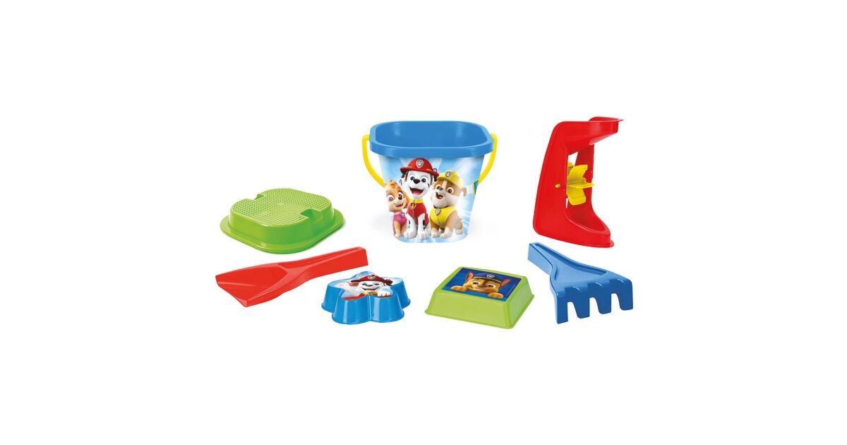 Komplet do piasku składający się z 7 elementów w klasycznych kolorach i grafikami z bajki Paw Patrol spodoba się wszystkim miłośnikom twórczej zabawy w piasku. W skład zestawu wchodzą: kwadratowe wiaderko, łopatka, grabki, sitko, młynek i 2 foremki. Poszczególne elementy posiadają grafikę wykonaną metodą IML, dzięki czemu pozostanie niezmieniona nawet w kontakcie z wodą i piaskiem.Zestaw pobudza wyobraźnię najmłodszych. Daje szansę poznania i zaproszenia do wspólnej zabawy nowych znajomych, co pomoże dziecku w rozwoju jego kompetencji społecznych, nauczy zachowania w grupie. Twórcza zabawa w piasku pobudza wyobraźnię dzieci, wspiera ich aktywność ruchową oraz sprawność i koordynację manualną oraz motoryczną.Całość wyprodukowana z nietoksycznych, bezpiecznych i wytrzymałych materiałów.