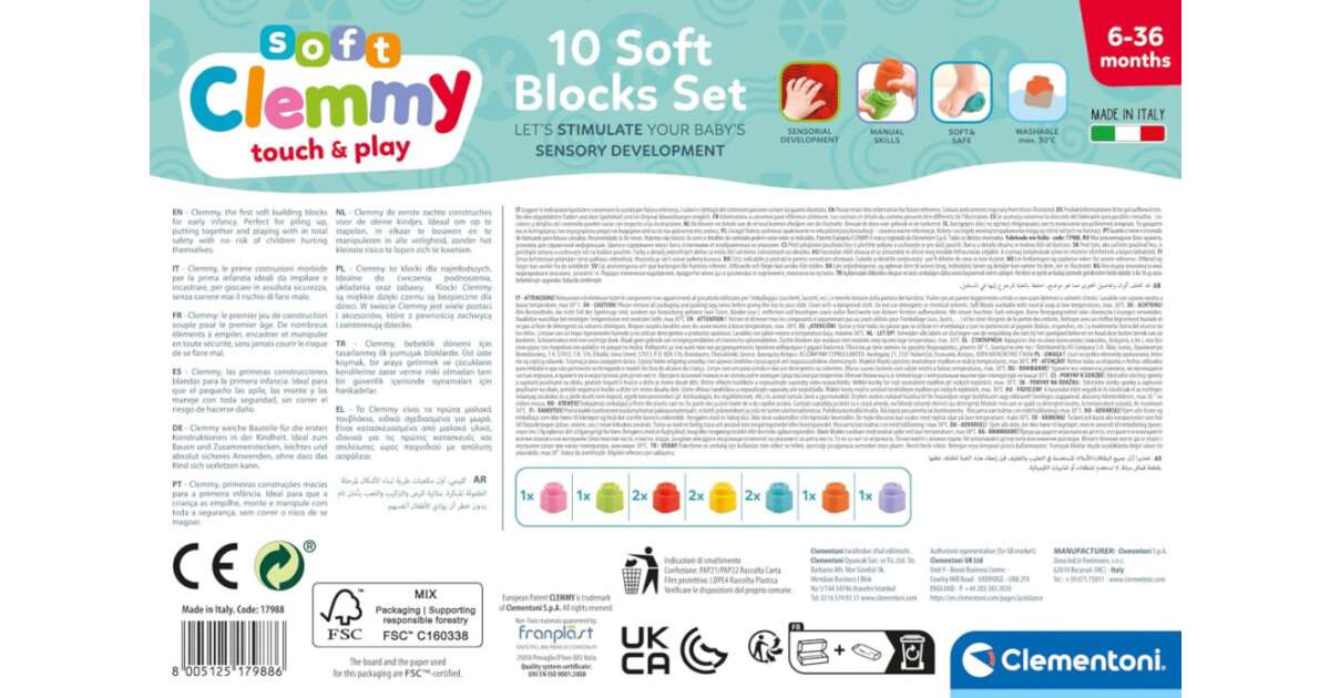 Clementoni Clemmy Miękkie Klocki - 10 sztuk, 6-36 miesięcy 👶