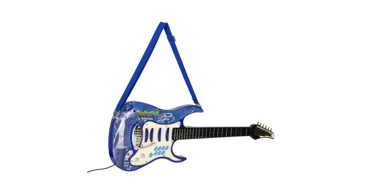 Dziecięca gitara elektryczna z wzmacniaczem i mikrofonem, niebieska
