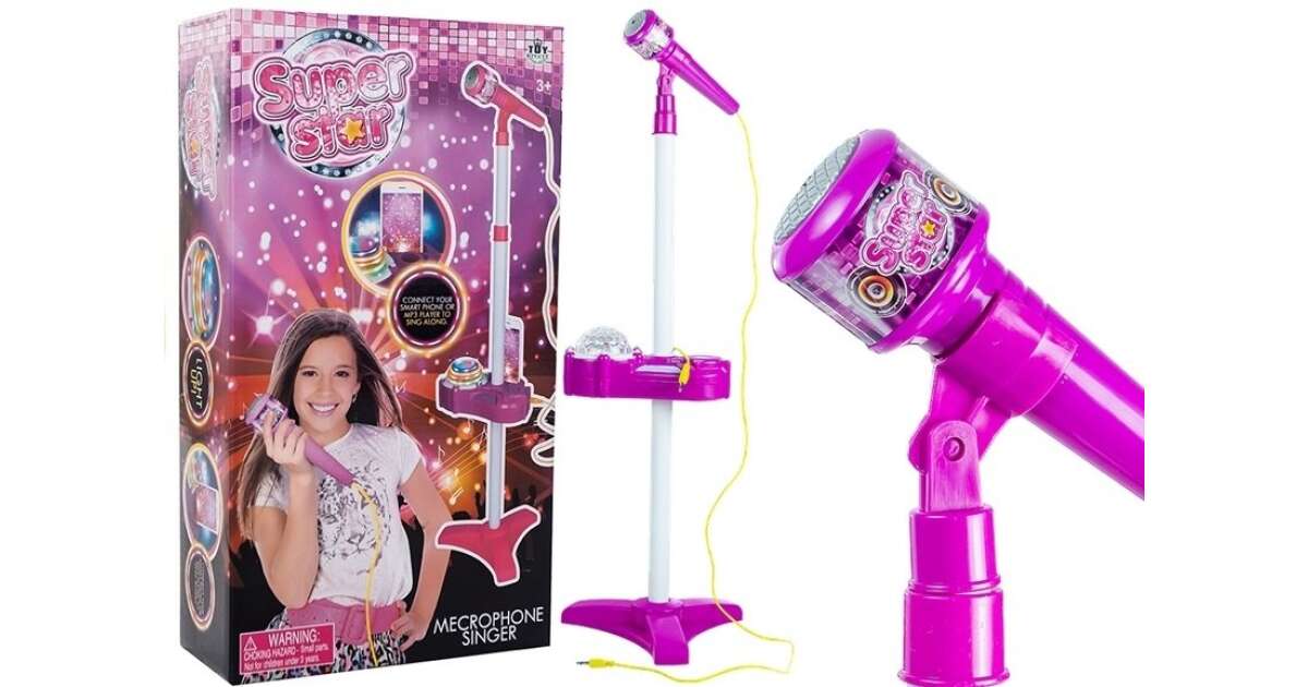 Śpiewaj, tańcz i błyszcz! 🎤 Różowy zestaw mikrofonowy ze statywem i światłami dyskotekowymi dla dzieci