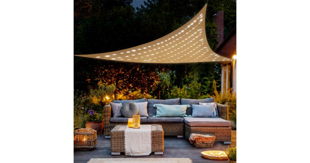 Trójkątny żagiel przeciwsłoneczny z oświetleniem LED - do ogrodu i na taras ☀️