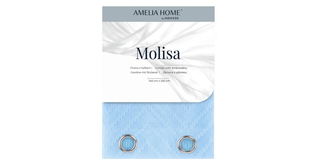 Nazwa produktu (USTALANA AUTOMATYCZNIE): zasłony MOLISA kolor błękitny haftowany wzór boho srebrny woal ringlik 140x250 ameliahome