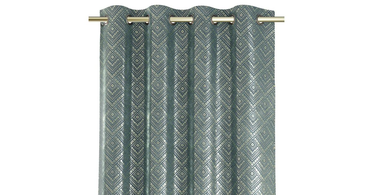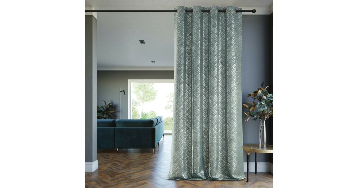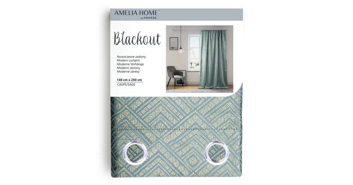Nazwa produktu (WYKRYTO AUTOMATYCZNIE): zasłony zaciemniające CASPE kolor miętowy zielony nadruk styl glamour srebrny ringlik blackout zamsz połysk 140x250 AmeliaHome