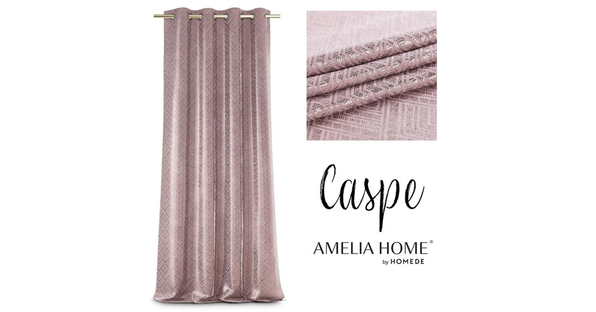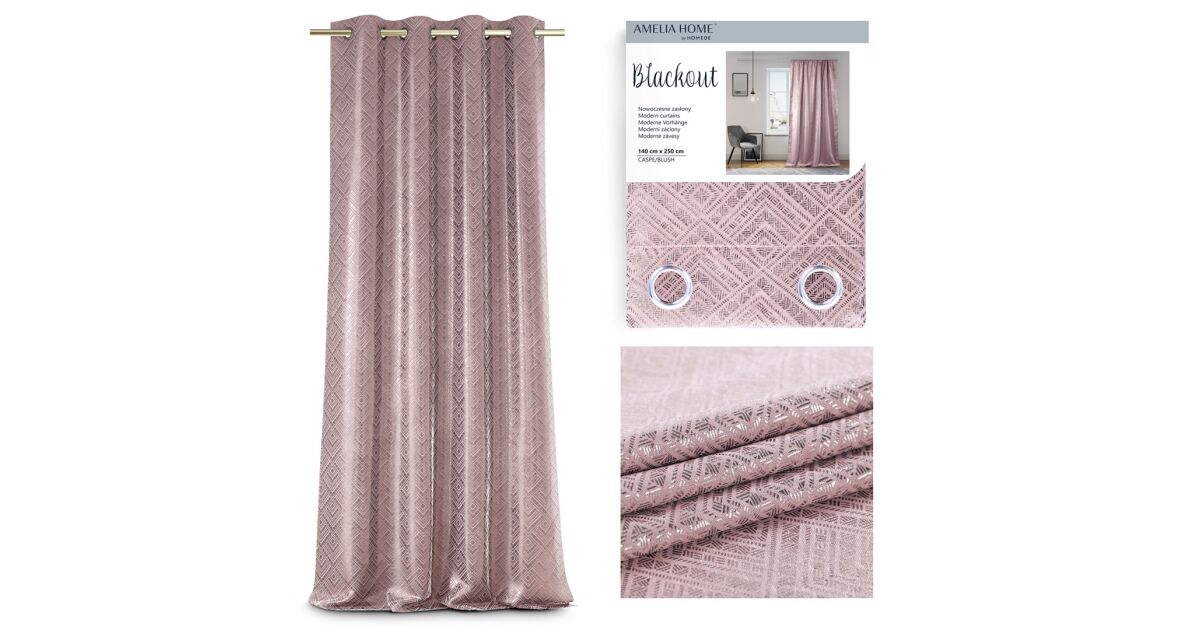 Nazwa produktu (AUTOMATYCZNIE ZWRÓCONA): zasłona zaciemniająca CASPE kolor różowy nadruk styl glamour srebrny ringlik blackout zamsz połysk 140x250 AmeliaHome