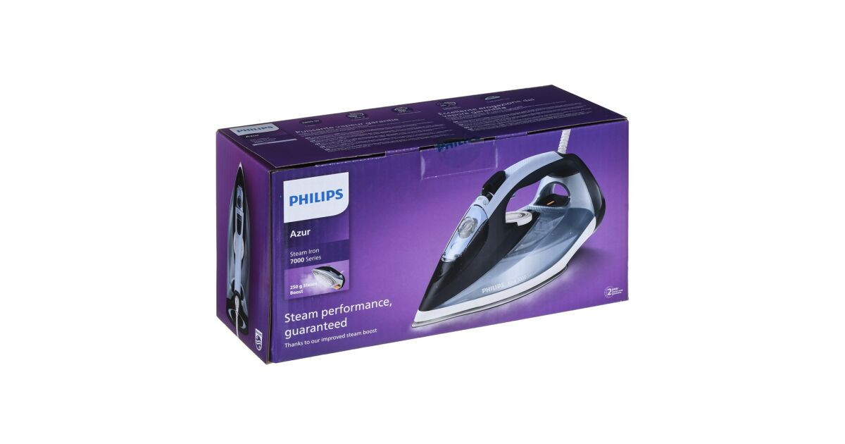 Żelazko Philips Azur DST7020/20, moc 2800 W, ciągły strumień pary 50 g/min, uderzenie pary 250 g, stopa SteamGlide Plus, zbiornik 300 ml i automatyczny system czyszczenia ze zintegrowanym poj