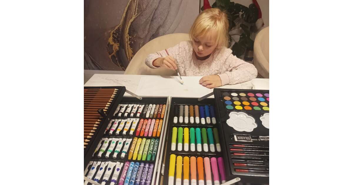 Ten 145-częściowy zestaw do kreatywnego rysowania premium zawiera wszystkie narzędzia potrzebne do rysowania i malowania, zarówno dla początkujących, jak i zaawansowanych artystów. Dzięki szerokiemu wyborowi kolorowych ołówków, markerów, pasteli olejnych, akwareli i farb akrylowych, kreatywność ogranicza tylko wyobraźnia. Zestaw jest dostarczany w poręcznej walizce z wzorem jednorożca, która ułatwia przechowywanie i transport. Dzieci szczególnie uwielbiają walizkę, która pomaga im utrzymać porządek w narzędziach, co potwierdzają opinie klientów.