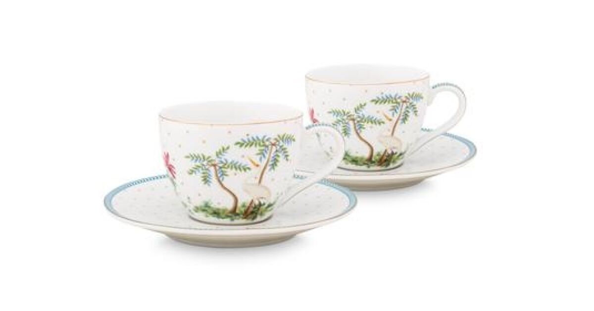 Rozkoszuj się chwilami spędzonymi przy kawie lub herbacie dzięki temu pięknemu zestawowi 2 porcelanowych filiżanek i spodków z kolekcji Pip Studio Jolie White! Elegancki design inspirowany tropikalnymi krajobrazami wprowadzi do Twojego domu odrobinę wakacyjnego nastroju każdego ranka.