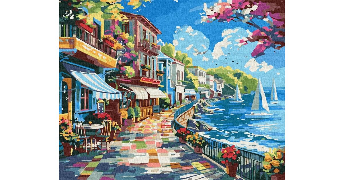 Zestaw do malowania po numerach Ideyka Miasto nad Oceanem (40 x 50 cm) - Kreatywny relaks i piękna dekoracja w jednym! 🎨