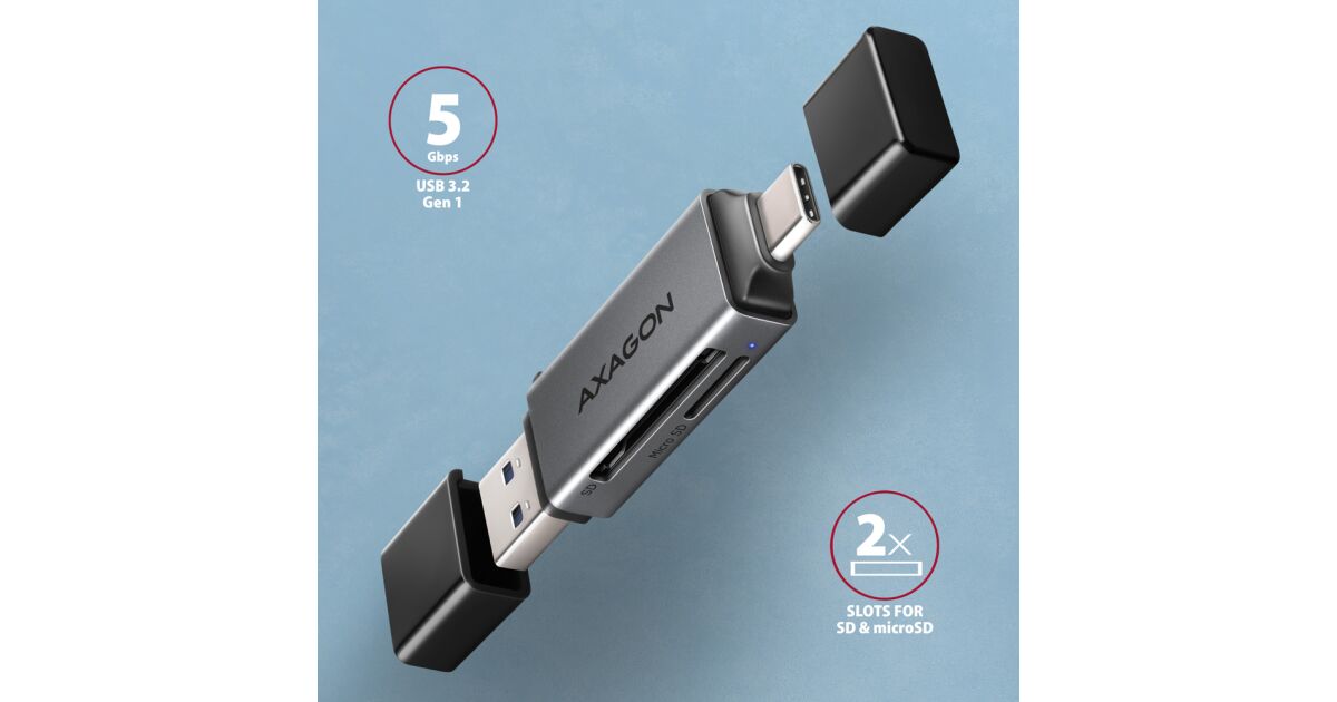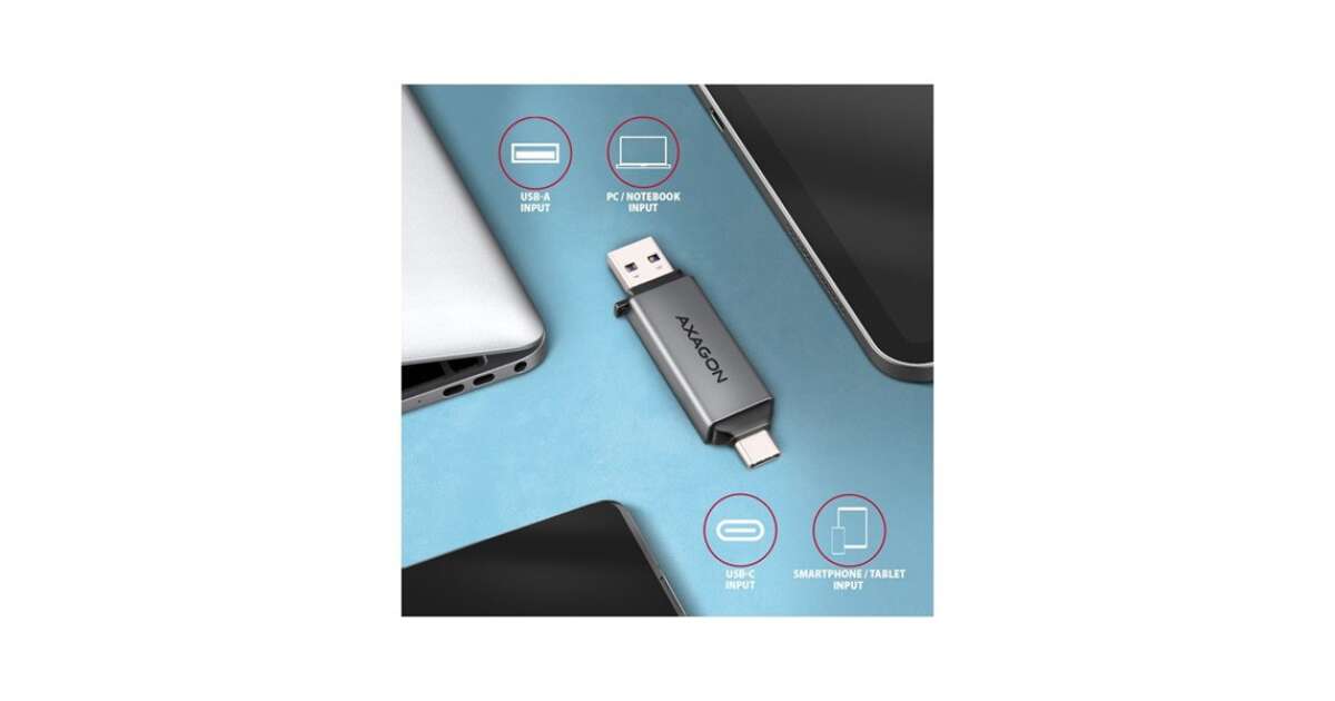 Czytnik Axagon kart zewnętrzny USB 3.2 Gen 1 Type-C + Type-A SD/microSD
