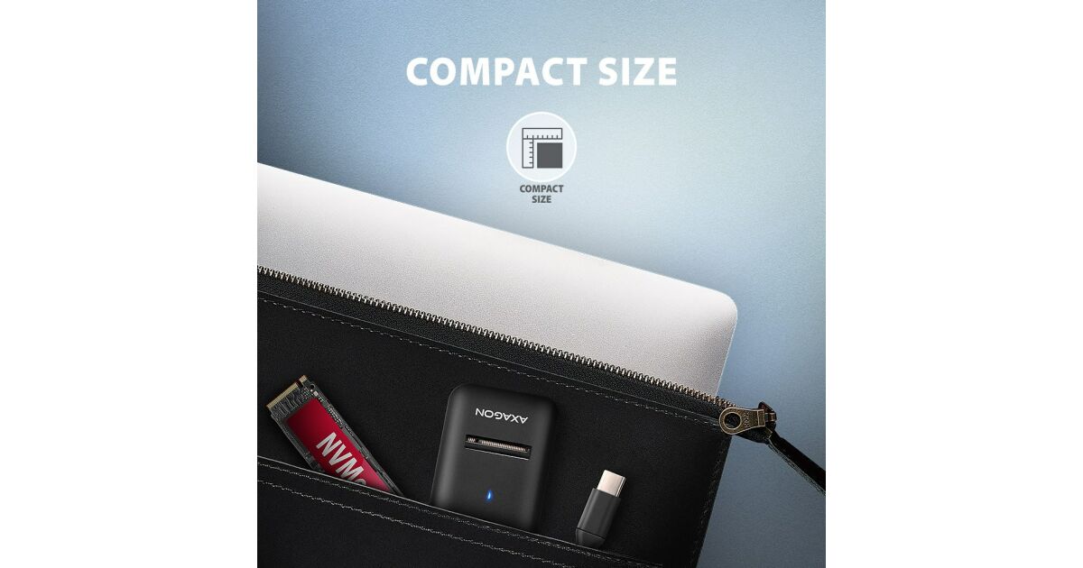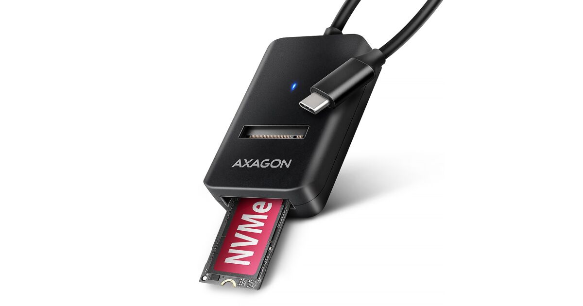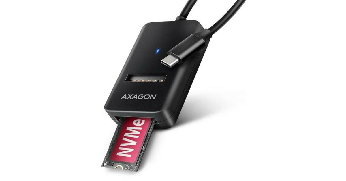 AXAGON ADM2-CMKompaktowy adapter AXAGON ADM2-CM M.2 z interfejsem USB 10Gbps zaprojektowany do łatwego korzystania z dysków SSD M.2 NVMe lub SATA. Solidnie połączenie z komputerem umożliwia dołączony na stałe kabel USB-C o długości 10 cm.Dzięki szybkiemu interfejsowi USB 3.2 Gen 2 prędkość transmisji wynosi do 10Gb/s. Druga generacja szybkiego interfejsu USB pozwala na korzystanie z prędkości nowoczesnych dysków SSD M.2. Uniwersalny adapter M.2 obsługuje również inne zaawansowane funkcje, takie jak. UASP, TRIM i umożliwia odczyt informacji S.M.A.R.T. monitorujących stan dysku. Obsługa trybu standby w stanie bezczynności.Unikalną cechą, dzięki nowemu chipsetowi, jest możliwość korzystania zarówno z dysków M.2 NVMe, jak i SATA. Nie musisz zastanawiać się nad tym, do jakiego typu napędu M.2 przeznaczony jest adapter, gdyż czyta po prostu wszystkie z nich. Kolejną zaletą adaptera jest możliwość bardzo szybkiego włożenia dysku w gniazdo adaptera. Wymiana dysków jest również łatwa. Te cechy sprawiają, że adapter jest bardzo poręcznym i przydatnym narzędziem do częstej pracy z różnymi typami dysków. Sprawia to, że jest to idealne narzędzie do testowania dysków, przesyłania danych, ich przywracania, tworzenia kopii zapasowych, itp.Dzięki niewielkim rozmiarom w każdej chwili może być pod ręką. Adapter nie zapobiega odprowadzaniu ciepła z dysku, co wydłuża jego żywotność, a także zapobiega spowolnieniu prędkości dysku, tzw. „Thermal Throttling“. Ten adapter dysku USB-C na M.2 może być używany z komputerami i laptopami, a także telefonami komórkowymi i tabletami.Specyfikacja techniczna:Gwarancja producenta: 24 miesiąceInterfejs: USB Type-CKompatybilność: M.2 22110, M.2 2280, M.2 2260, M.2 2242, M.2 2230Wymiary: 55 x 37 x 12 mmKolor: czarnyMasa: 19 g