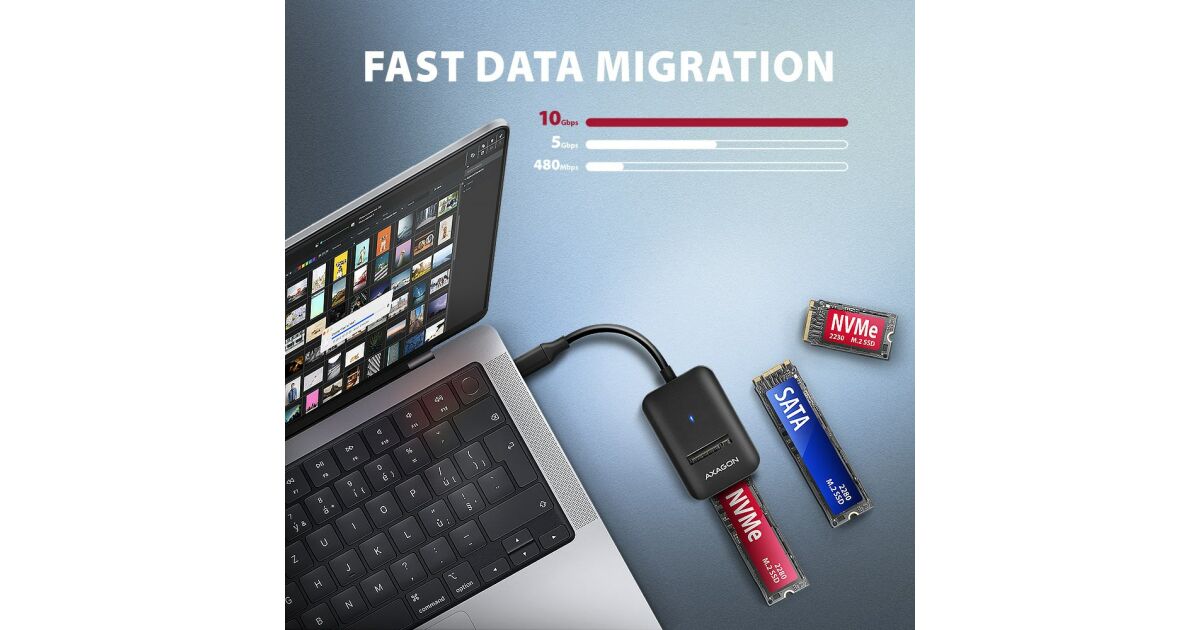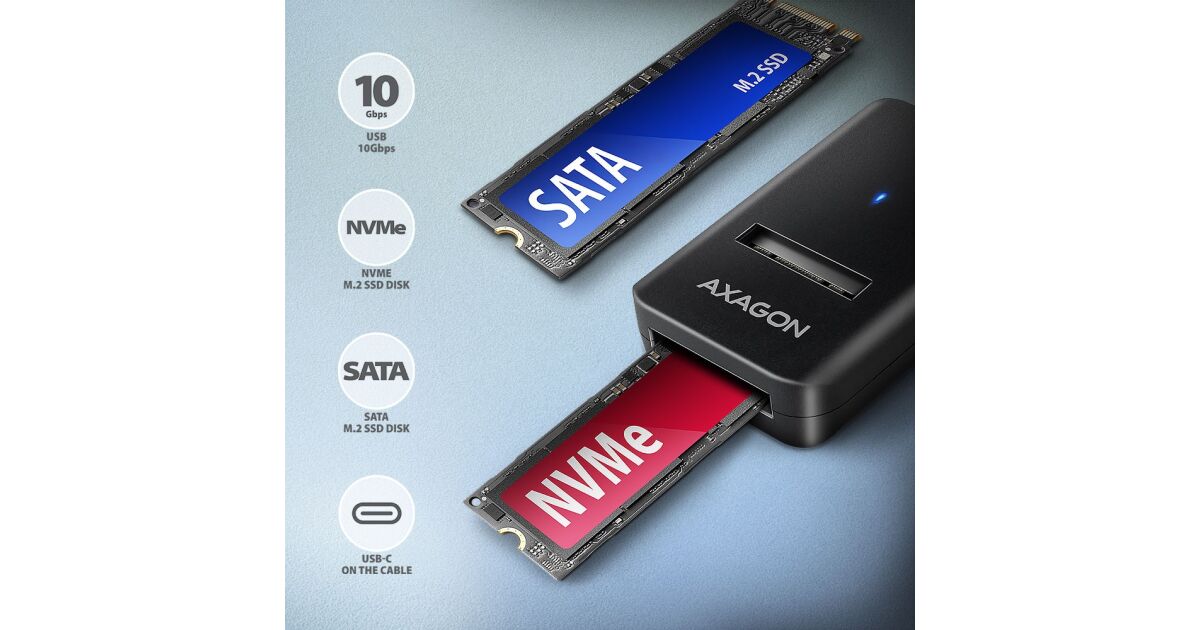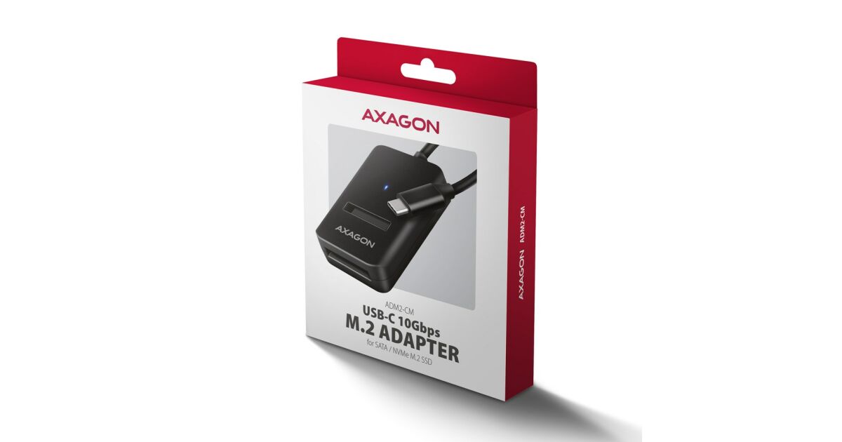 HUB USB Axagon AXAGON ADM2-CM USB-C 10Gbps - M.2 NVMe & SATA SSD adaptér, kabel USB-C 10cm