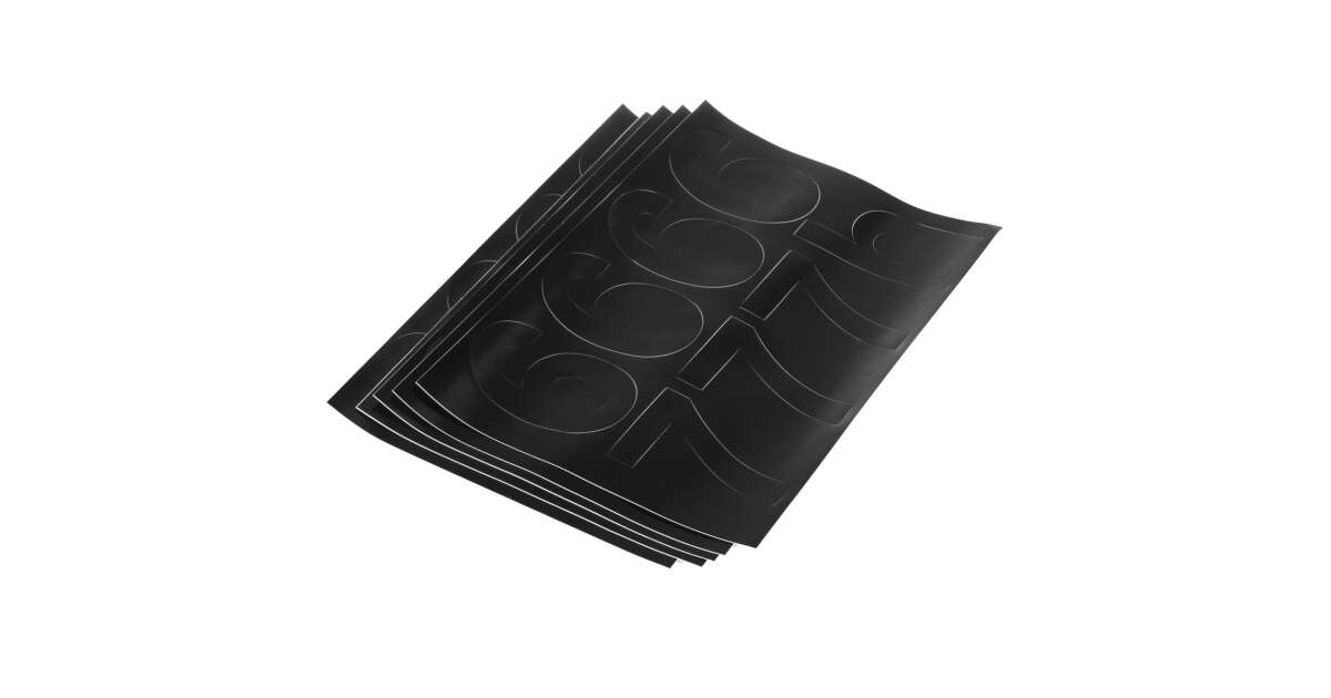 W zestawie znajdują się 3 arkusze z cyframi od 0 do 9, oraz zestaw liter od A do I.