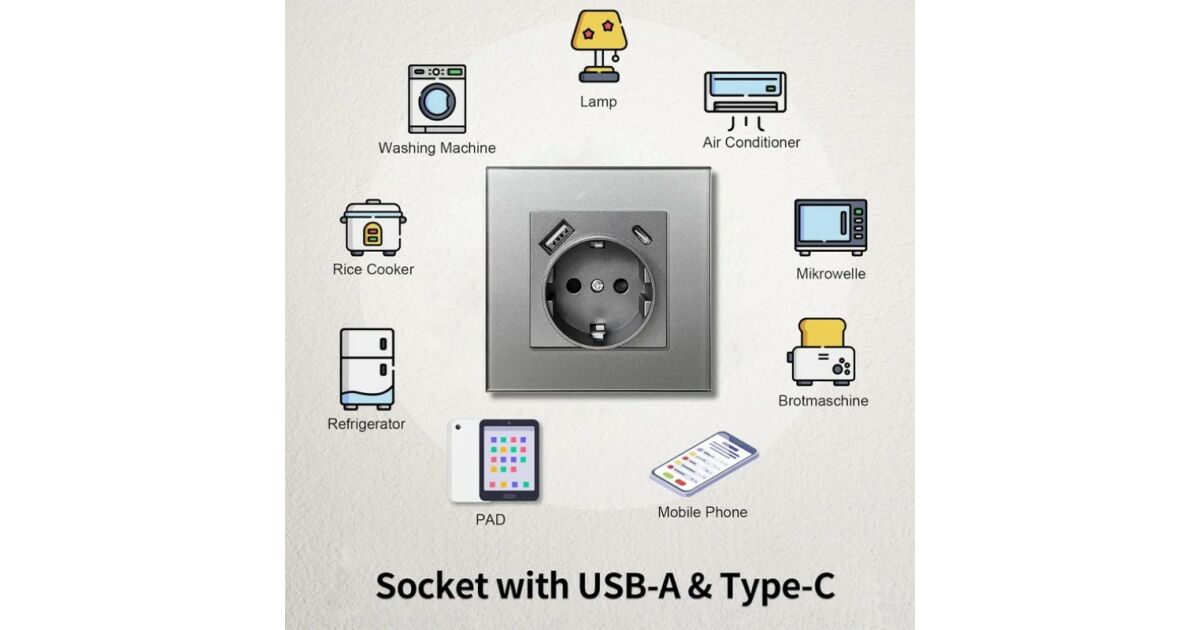- Porty USB-A i USB-C: Ładuj swoje urządzenia bezpośrednio z gniazdka, bez adaptera. 📱🔌